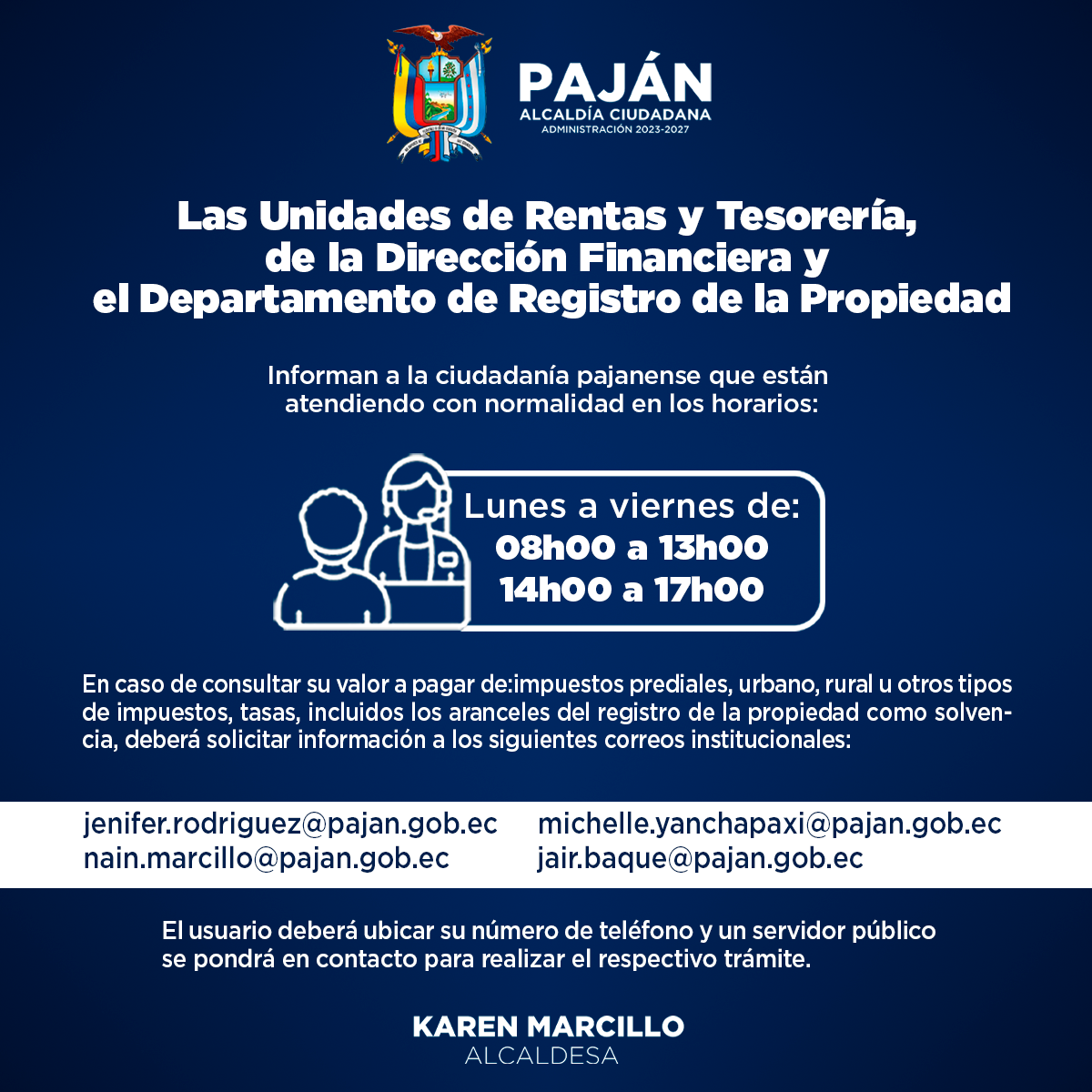 alcaldia@pajan.gob.ec / secretaria.general@pajan.gob.ec